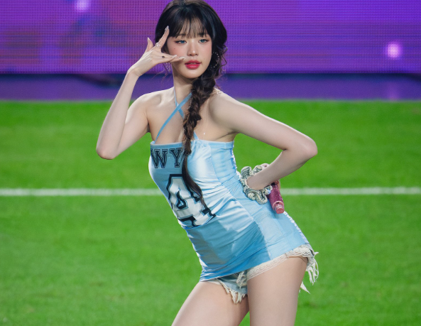 When IVE attended the Coupang Play Series Halftime Show on July 30, the group’s performance was overshadowed by a heated debate over Jang Wonyoung’s outfit. While the event was meant to celebrate the fusion of K-pop and sports, the focus quickly shifted to the youngest member’s fashion choice—a fitted blue dress with a short hemline, paired with denim shorts underneath.