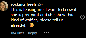 "This is teasing me, I want to know if she is pregnant and she show this kind of waffles, please tell us already!!!"