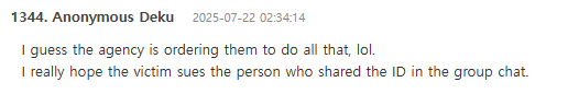 "I guess the agency is ordering them to do all that, lol. I really hope the victim sues the person who shared the ID in the group chat."
