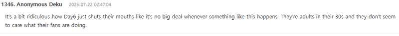 "It's a bit ridiculous how Day6 just shuts their mouths like it's no big deal whenever something like this happens. They're adults in their 30s and they don't seem to care what their fans are doing."