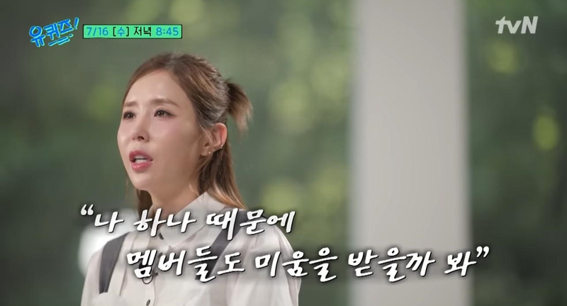 Shinji will appear on tvN’s You Quiz on the Block with her group on July 16. In a preview, she said, “I’m scared the members will be hated because of me.” But her teammates showed strong support. Kim Jong-min said, “It feels like family.” Baek-ga added, “I love you.”