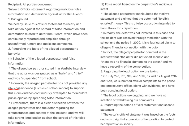 The situation grew more complicated when Song Ha-yoon filed additional complaints against Mr. A for defamation, intimidation, and obstruction of business. In response, Mr. A announced that he would pursue legal action against both Song Ha-yoon and her representatives for spreading false information, defamation, and violations of legal ethics.