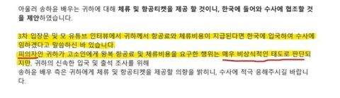 “In addition, actor Song Ha-yoon will provide you with accommodation and airfare, and has suggested that you enter Korea and cooperate with the investigation.