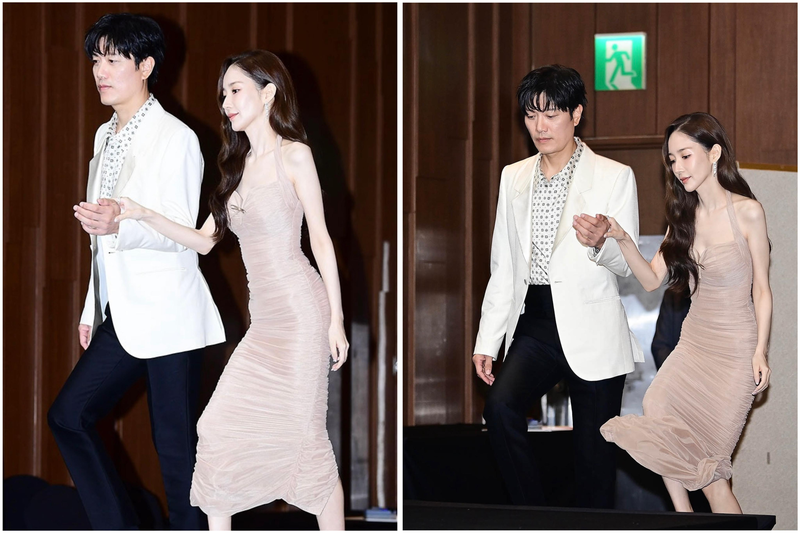 While the public is excited for her comeback, Park Min-young’s physical appearance at the Confidence Man KR press conference on September 1 at Hotel Stanford, Seoul, became a hot topic. She appeared elegant in a nude-toned beige dress, but her noticeably slimmer figure drew concern among fans.